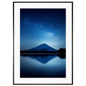 日本写真 精進湖からの富士山と星空 インテリア アートフォトポスター額装 AS4515