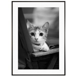 動物写真 猫の好奇心 インテリア モノクロアートポスター額装 AS4604
