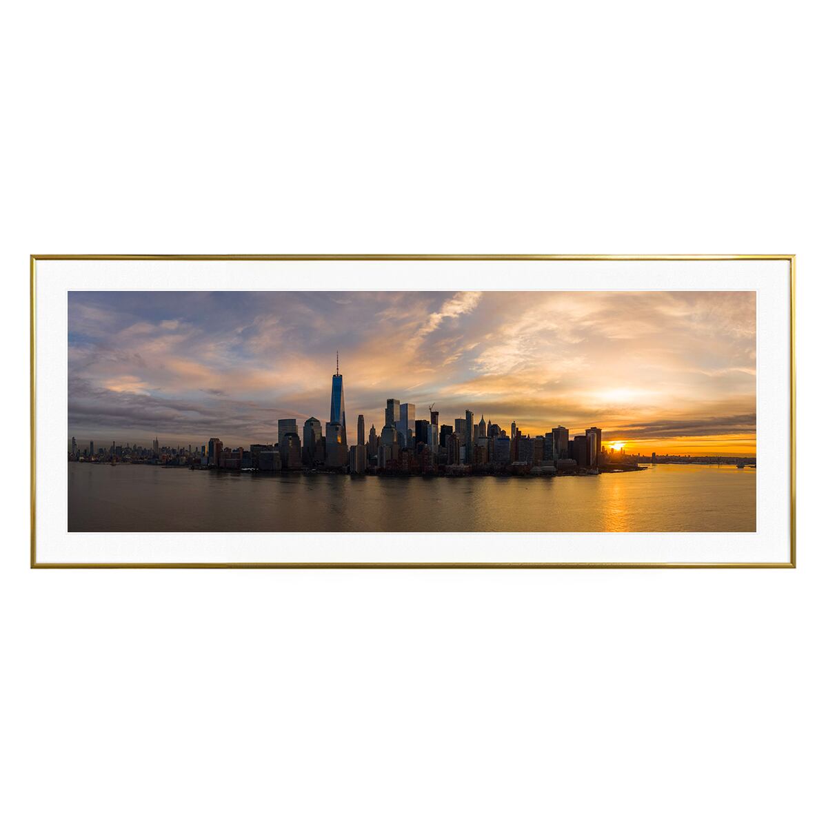 夕日写真 アメリカ 夕景のニューヨーク マンハッタン島 インテリアアートパノラマ横長額装 AS4829