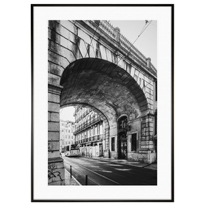 ポルトガル写真 リスボンの街にかかるアーチ橋 インテリア モノクロアートポスター額装 AS1525