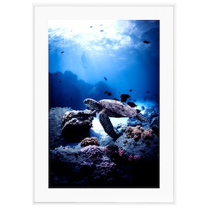 夏写真 ウミガメ インテリアアートポスター額装 AS1958