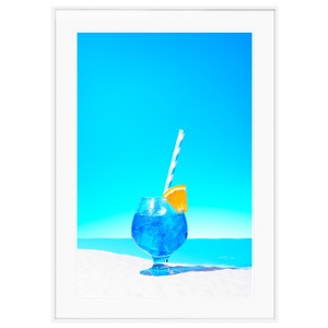 夏写真 オレンジと青いソーダ水 インテリアアートポスター額装 AS2604
