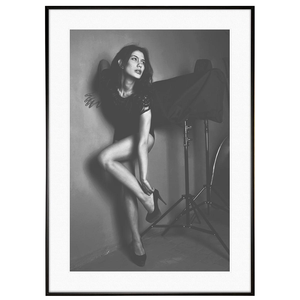 人物写真 ヒールをなおす女性 インテリアアート モノクロポスター額装 AS3690