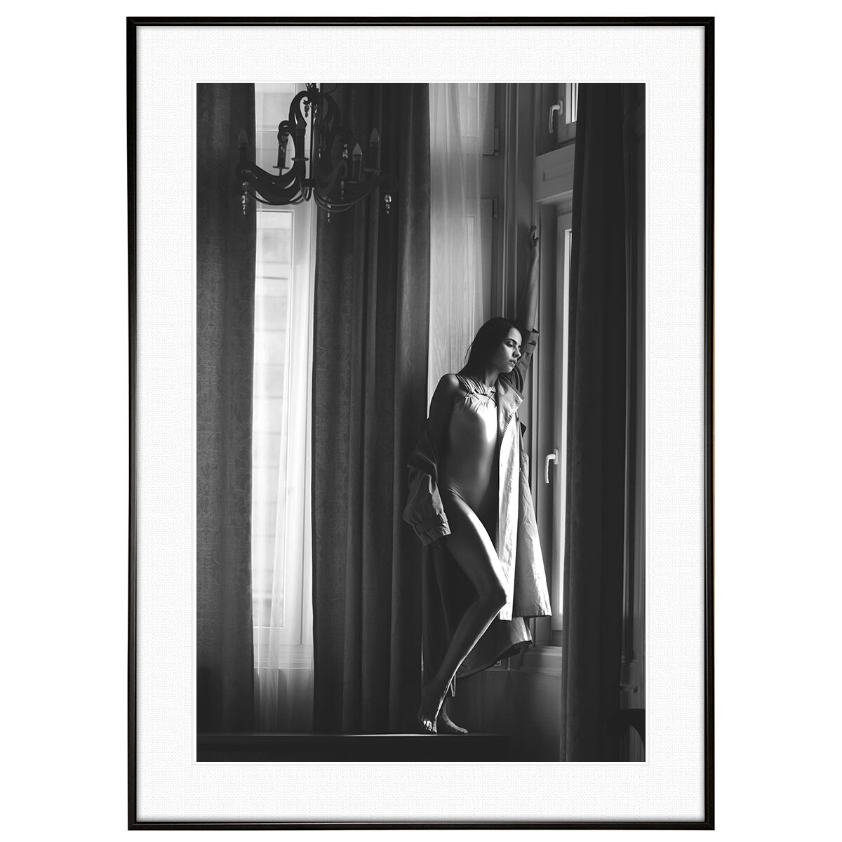 人物写真 窓の外を見る女性 モノクロ インテリアアートポスター額装 AS3780